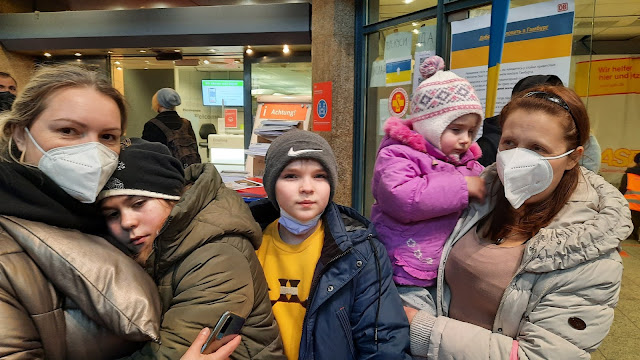 Im Anschluss ging es weiter auf den Hamburger Hauptbahnhof, um dort den angereisten Geflohenen Erste-Hilfe-Taschen anzubieten. Einige machen in Hamburg nur kurz Zwischenstation, während andere zunächst erst einmal an ihrem Ziel angekommen sind. Eine ältere Frau zeigte uns ein Foto ihres zerstörten Hauses - sie wartete auf ihre Tochter, die bereits hier angekommen ist. Sie wirkte sehr verloren und wir wünschen ihr von Herzen alles Gute. Es braucht oft wirklich nur einen Blick, eine kleine menschliche Geste, um Mitgefühl und Verbundenheit zum Ausdruck zu bringen.